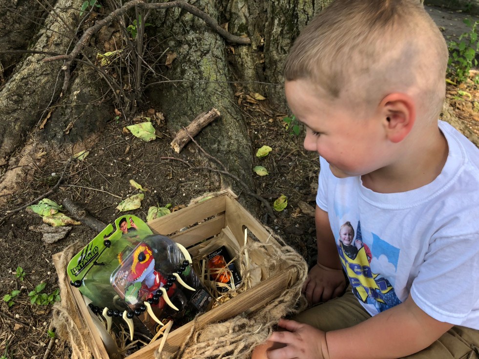 Zieke was quite taken with him. This T-Rex is call Ripsaw, there is another one that is blue that is called Ironsaw. Such fun names!